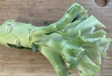 Broccoli stalks are edible but often we don’t have the reflex to use them.